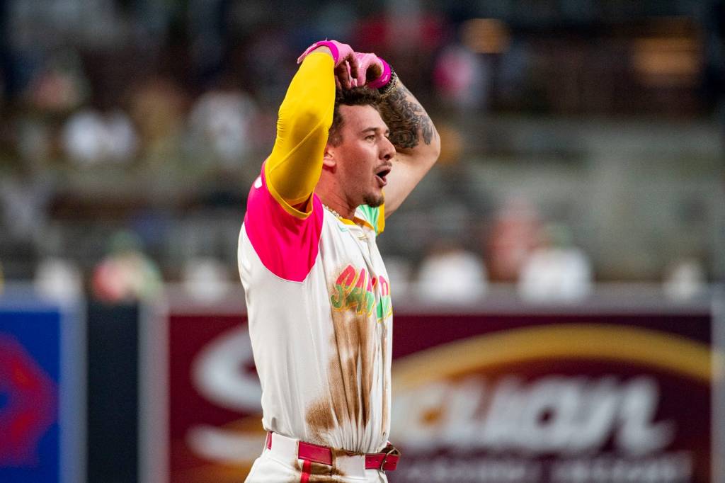 Jason Adam entró en la octava y complicó todo para los Padres. Recibió un doble de Andrew McCutchen, para después caminar a dos bateadores y dejar las bases llenas con solamente dos outs y desde el bullpen salió el cerreador estelar de San Diego.