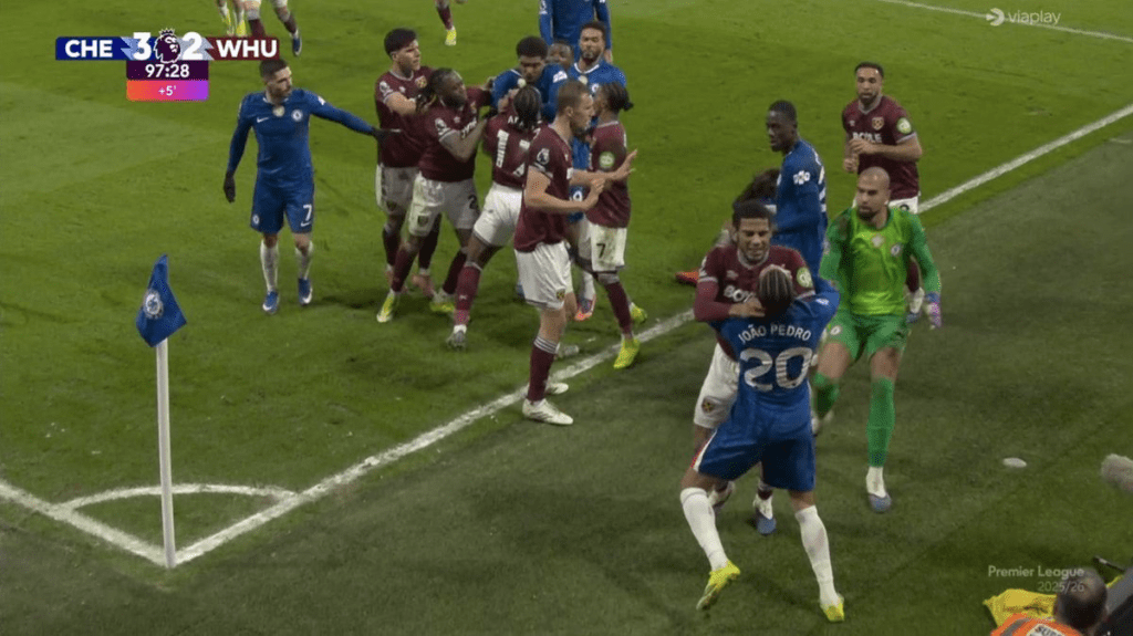 Sobre el final se produjo un conato de bronca que terminó con la expulsión de Jean-Clair Todibo, tras agredir a João Pedro. Aún hubo tiempo para un último tiro de esquina que no cambió el marcador, y el silbatazo final confirmó una remontada épica del Chelsea, que se quedó con tres puntos de oro ante su gente.